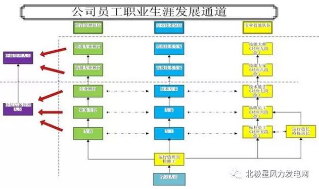 由于風(fēng)電場(chǎng)管理崗位有限,為了避免因人設(shè)崗,同時(shí)又要激勵(lì)員工發(fā)展、成長(zhǎng),讓員工的職業(yè)生涯規(guī)劃更加明確,公司創(chuàng)新開(kāi)展員工職業(yè)發(fā)展第二條通道,具體內(nèi)容見(jiàn)下圖: