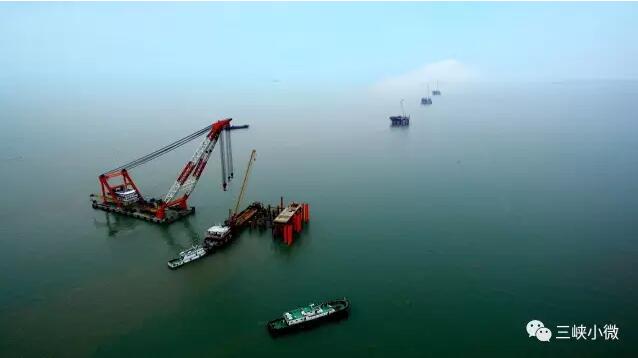 在陸地上組裝好以后,整體吊裝到海面上