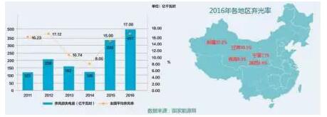 圖2 2016年全國主要地區(qū)棄風(fēng)、棄光情況