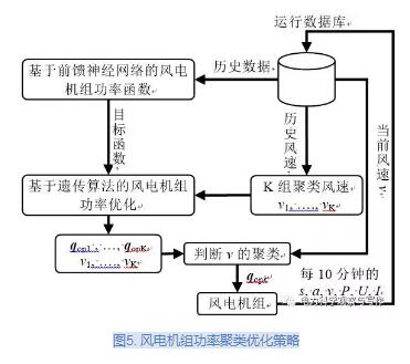 逐點(diǎn)優(yōu)化策略要求每10分鐘進(jìn)行一次優(yōu)化,顯然該策略所需計(jì)算量較大,不利于在線優(yōu)化風(fēng)電機(jī)組功率。本研究引入K均值聚類方法,可對(duì)風(fēng)速數(shù)據(jù)進(jìn)行聚類,通過(guò)采用K組風(fēng)速聚類下最優(yōu)控制量,實(shí)現(xiàn)對(duì)風(fēng)電機(jī)組功率的在線優(yōu)化,降低優(yōu)化計(jì)算量,其流程圖如圖5所示。