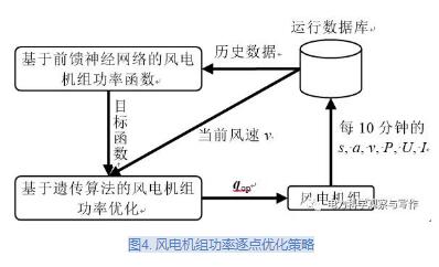 根據(jù)前述分析,本文提出一種逐點(diǎn)優(yōu)化策略,用于優(yōu)化風(fēng)電機(jī)組功率,其流程圖如圖4所示,該策略的主要思想是在每運(yùn)行時(shí)刻點(diǎn)調(diào)用遺傳算法,優(yōu)化搜索風(fēng)電機(jī)組最優(yōu)控制參數(shù)。