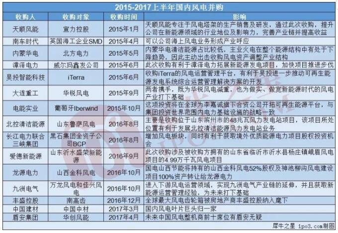 中國(guó)風(fēng)電企業(yè)也因此進(jìn)入一個(gè)大浪淘沙的階段,風(fēng)電收購(gòu)正當(dāng)時(shí),局部的兼并重組、收購(gòu)大戲不斷上演,部分企業(yè)還跑到國(guó)外市場(chǎng)進(jìn)行收購(gòu)。以下是近兩年以國(guó)內(nèi)相關(guān)企業(yè)為主體的并購(gòu)情況。