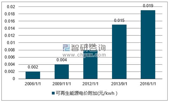 中國可再生能源電價附加(元/kwh)