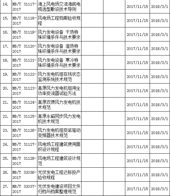 國(guó)家能源局發(fā)布2017年第10號(hào)公告:批準(zhǔn)17項(xiàng)風(fēng)電標(biāo)準(zhǔn)(附目錄)
