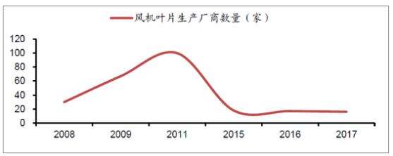 國內(nèi)風電葉片制造商數(shù)量顯著減少