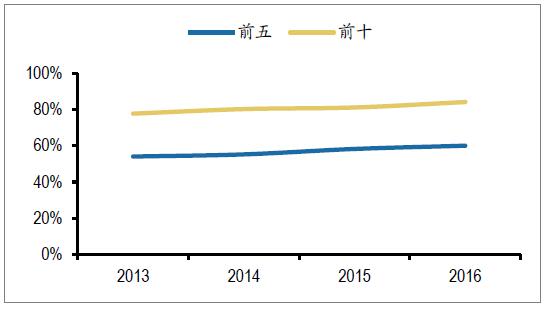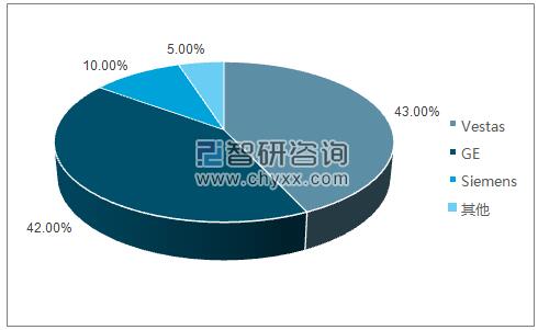 2016年,美國前三大風機制造商占有95%的風電新增裝機市場,前三位的風機制造商分為是維斯塔斯、GE和西門子。而國內(nèi)市場的風電機組制造商裝機的集中度依然不高,前三家風電機組制造商的市場占有率還未超過45%,