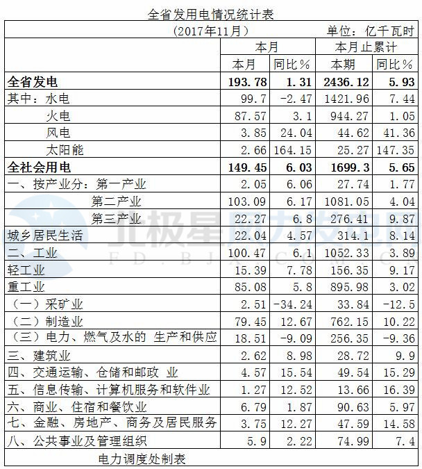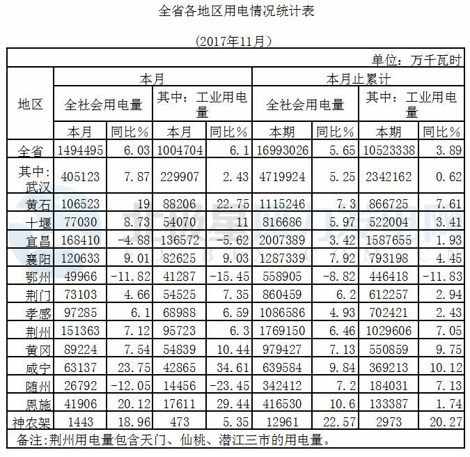 湖北省發(fā)改委近日公布十一月份全省電力運(yùn)行情況。11月份,全省發(fā)電193 78億千瓦時(shí),增長(zhǎng)1 31%,其中,三峽發(fā)電70 98億千瓦時(shí),下降1 77%。不含三峽,全省發(fā)電122 81億千瓦時(shí),增長(zhǎng)3 18%。元至11月,全省累計(jì)發(fā)電