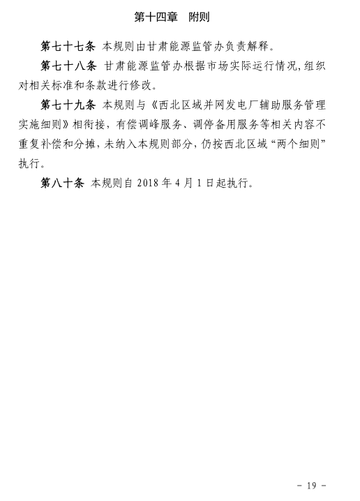 國家能源局甘肅監(jiān)管辦日前發(fā)布了《甘肅省電力輔助服務市場運營規(guī)則(試行)》,于2018年4月1日起執(zhí)行。電力輔助服務市場的市場主體為已取得