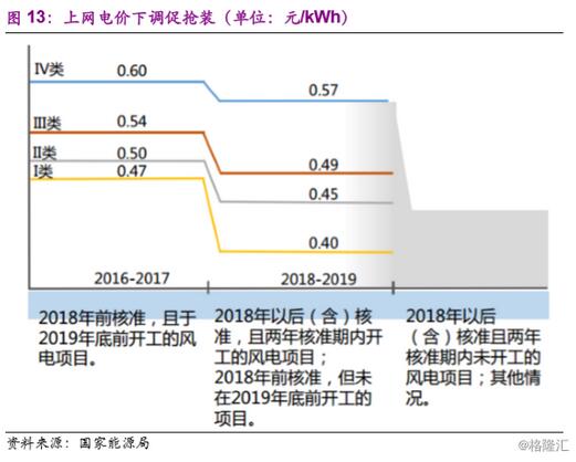 根據(jù)能源局風(fēng)電電價調(diào)整方案,2018年以前核準(zhǔn)并納入以前年份財政補(bǔ)貼規(guī)模管理的陸上風(fēng)電項目,若2019年底前仍未開工建設(shè),將執(zhí)行2018年標(biāo)桿上網(wǎng)電價。從調(diào)整幅度看,2018年電價較2016年下調(diào)10%-15%,下調(diào)幅度遠(yuǎn)超上次調(diào)整。