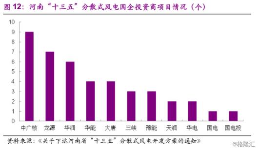 由于預(yù)期分散式風(fēng)電會和分布式光伏類似,不發(fā)生棄電,從而保證投資收益的穩(wěn)定,并且單個項目總投資相較集中式風(fēng)電大大減少(平均約在1億元左右),各類民營資本涌入分散式風(fēng)電的開發(fā)成為趨勢。以河南省公布的項目為例來看,河南省“十三五”分散式風(fēng)電開發(fā)方案文件中共有124個項目,其中業(yè)主為五大四小等國有投資商的項目有42個,占比34%,合計容量79.7萬千瓦,占比38%。相比集中式風(fēng)電以國有電力投資商為主導(dǎo)的局面,分散式風(fēng)電已經(jīng)顯露出民營資本活躍的跡象。