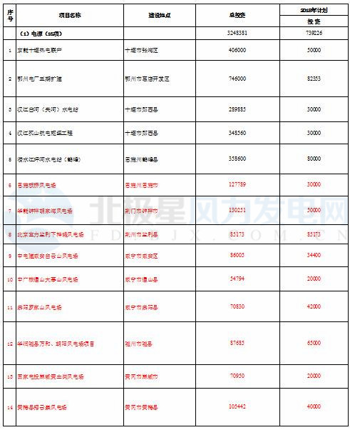 9、湖北省2018年省重點建設(shè)計劃項目:10個風電項目 總投資903736萬元(附全名單)
