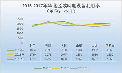 從風(fēng)電設(shè)備利用率上看,華北區(qū)域除了山東略有小幅下降外,其他地區(qū)都有所提升,可見華北地區(qū)的棄風(fēng)問題也得到了相應(yīng)的緩解。河北、天津、內(nèi)蒙古風(fēng)電設(shè)備利用小時(shí)數(shù)分別為2250小時(shí)、2095小時(shí)、2063小時(shí)。