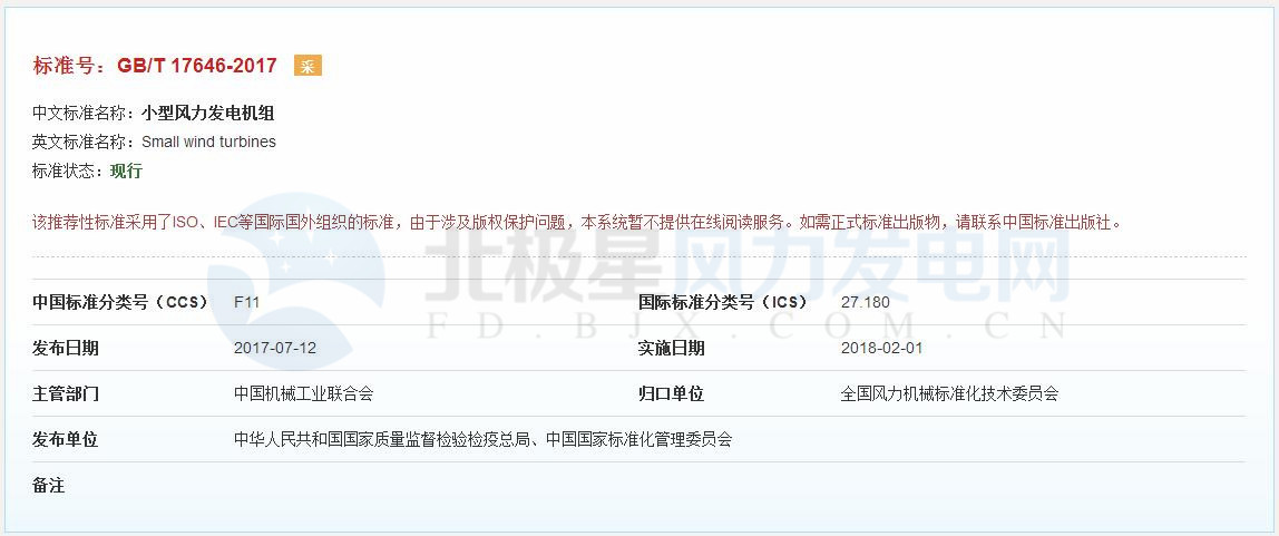 2018年2月1日起,《小型風(fēng)力發(fā)電機(jī)組》、《風(fēng)力發(fā)電機(jī)組驗(yàn)收規(guī)范》2項(xiàng)風(fēng)電標(biāo)準(zhǔn)現(xiàn)已施行。以下為具體標(biāo)準(zhǔn)內(nèi)容: