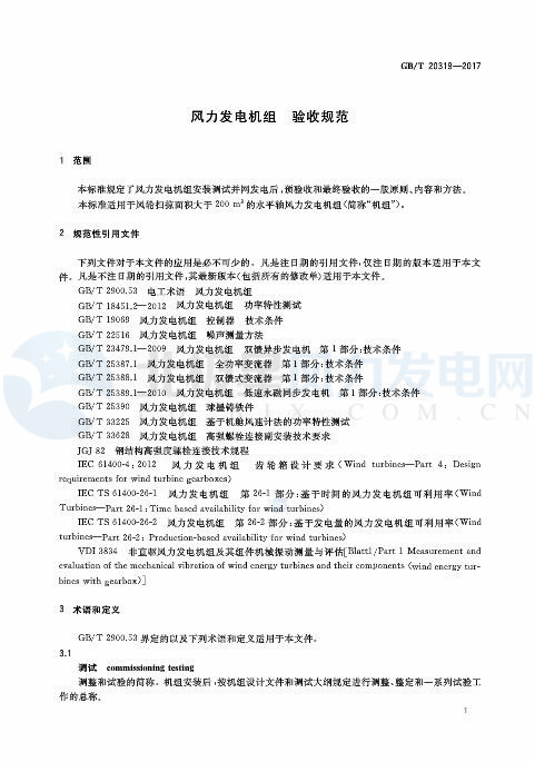 《風(fēng)力發(fā)電機(jī)組驗(yàn)收規(guī)范》全文:
