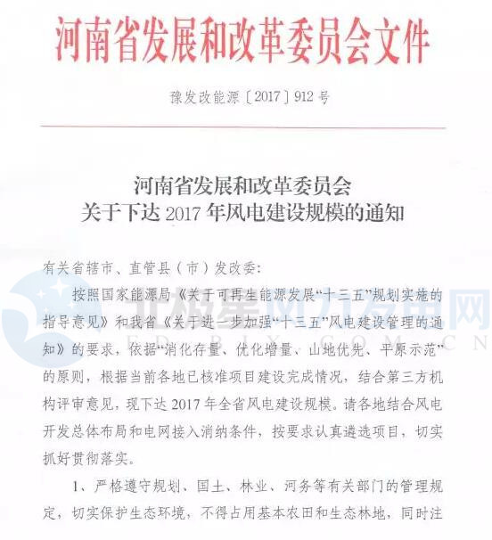 河南省2017年風(fēng)電建設(shè)方案重磅出爐:22個項目計411萬千瓦(附通知及方案)