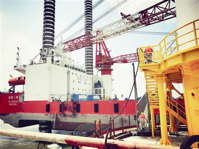 在福清興化灣海上風電樣機試驗風場Y2號施工平臺上,近一年沒回家的海峽發(fā)電公司副總經(jīng)理隋奎芳指著樣機告訴記者,“7月25日,樣機試驗風場首臺風機成功吊裝;8月21日,第二臺風機完成吊裝。第一臺風機吊裝我們安裝了10多天,第二臺風機吊裝時間基本和陸地差不多,用時兩天半,目前兩臺海上風機正緊張開展送電及調(diào)試工作。9月中旬,首批3臺海上風機將并網(wǎng)發(fā)電;10月,14臺風機全部安裝完成。”