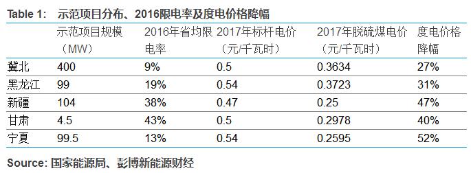•   13個示范項目集中在河北、黑龍江、甘肅、寧夏、新疆五個省份,棄風(fēng)率相對較低的河北省將建設(shè)400MW,占示范總規(guī)模的57%。四個項目(共計198.5MW)早已于2014年前獲得項目批復(fù),但可能由于限電擔(dān)憂遲遲未開工。