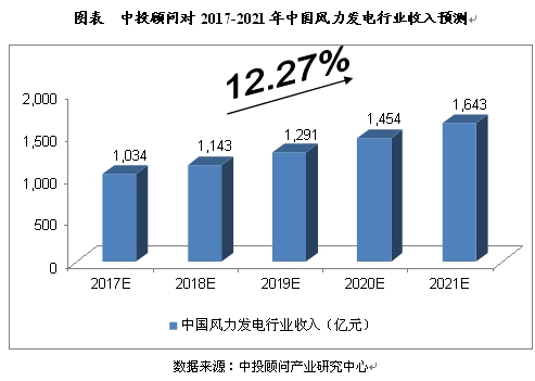 中投顧問(wèn)對(duì)2017-2021年中國(guó)風(fēng)力發(fā)電行業(yè)收入預(yù)測(cè)