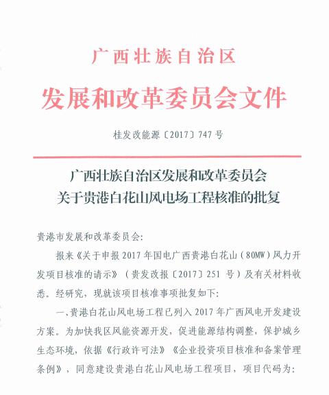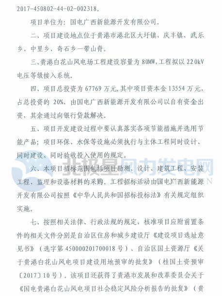 廣西發(fā)改委核準(zhǔn)國電貴港百花山80MW風(fēng)電項(xiàng)目(附文件)
