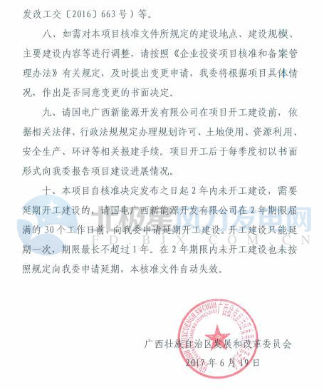廣西發(fā)改委近日核準(zhǔn)倆人國電貴港百花山風(fēng)電項(xiàng)目。該項(xiàng)目規(guī)模為80MW,總投資67769萬元。以下為原文件:
