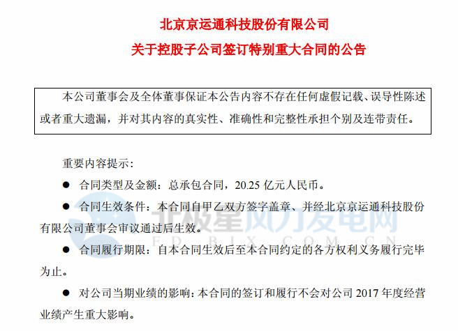 京運通控股子公司擬逾20億元建特高壓外送風電項目 總裝機30萬千瓦