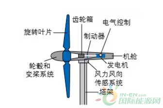 風(fēng)電即用風(fēng)力發(fā)電,也就是把風(fēng)的動(dòng)能轉(zhuǎn)變成電能。風(fēng)力發(fā)電機(jī)組一般由風(fēng)輪、齒輪箱、發(fā)電機(jī)、塔架、電氣控制系統(tǒng)和儲(chǔ)能裝置等構(gòu)件組成。風(fēng)輪是風(fēng)電機(jī)組最主要的部件之一,由槳葉和輪轂組成。槳葉具有良好的動(dòng)力外形,就像風(fēng)車一樣,可以將風(fēng)能轉(zhuǎn)化為機(jī)械能,旋轉(zhuǎn)的風(fēng)輪再通過齒輪箱增速驅(qū)動(dòng)發(fā)電機(jī),進(jìn)而將機(jī)械能轉(zhuǎn)化為電能。