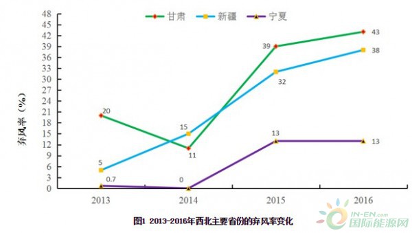 圖1 2013-2016年西北主要省份的棄風(fēng)率變化