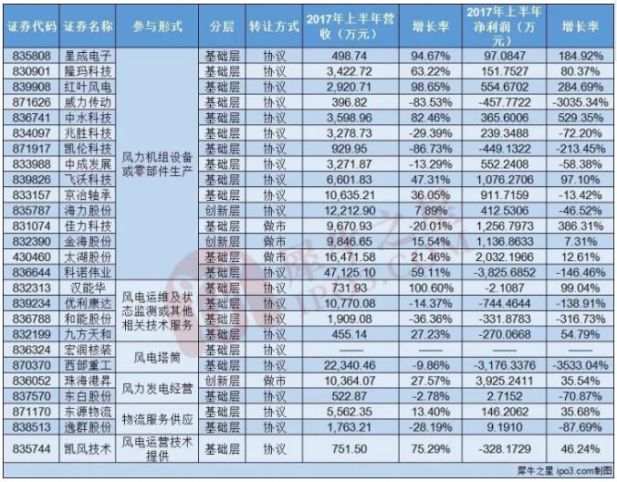 新三板26家風電企業(yè)上半年業(yè)績情況