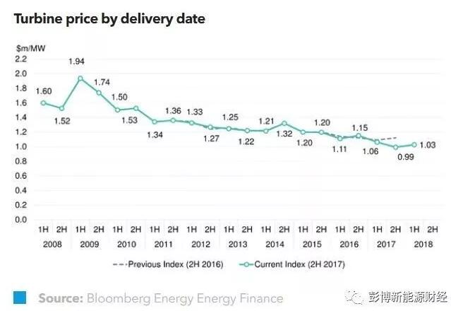 BNFF:2017年下半年風(fēng)機造價99萬美元/兆瓦 下降49%