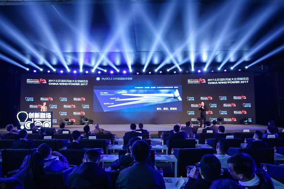 2017年10月16日-19日,2017北京國際風能大會(CWP2017)在北京隆重召開。在中國國際展覽中心(新館)E2館創(chuàng)新劇場,明陽在繼2015年推出MYSE3.0,在今年推出MYSE5.5和7.0,明陽智慧集團執(zhí)行總裁兼首席技術(shù)官張啟應先生做了新品介紹和發(fā)布。
