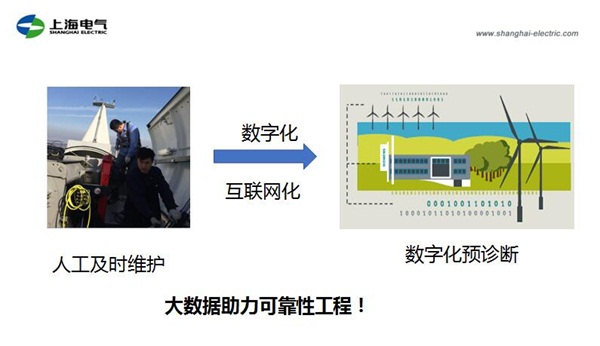 黃永民認(rèn)為現(xiàn)在海上風(fēng)電并沒有面積鋪開,因?yàn)榭紤]到當(dāng)前的可靠性不足,因此上海電氣風(fēng)電集團(tuán)在這方面做了很多工作。上海電氣風(fēng)電集團(tuán)認(rèn)為,業(yè)主對(duì)可靠性要求非常高,高的可靠性就意味著高的利潤(rùn)和高的回報(bào)率。隨著大數(shù)據(jù)的發(fā)展,讓可靠性有了更加可靠的手段,可以通過大數(shù)據(jù)的分析來提高現(xiàn)場(chǎng)的可靠性。