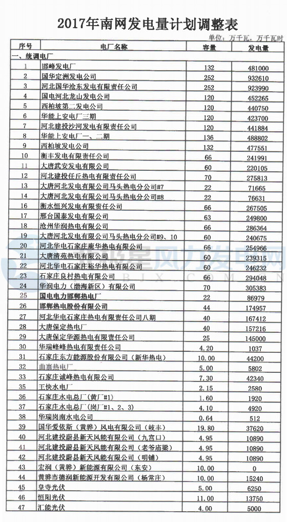 河北省發(fā)改委調(diào)整河北南網(wǎng)2017年發(fā)電量計劃:涉及4家風電廠 發(fā)電量7.03億千瓦時(附通知)