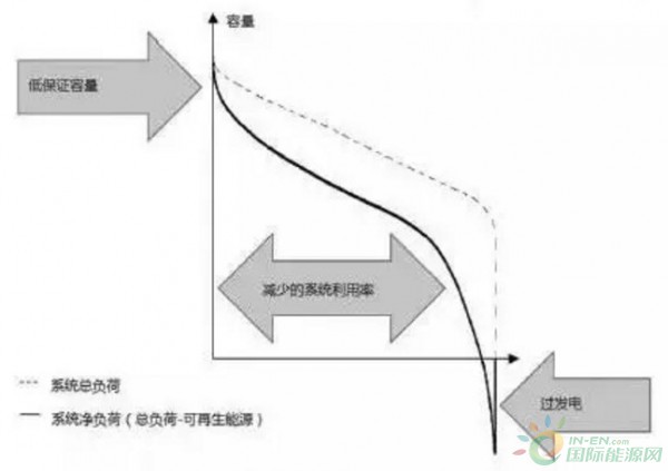 波動性可再生能源(主要是風電與光伏)進入電力系統(tǒng),具有三個明顯的系統(tǒng)效應(yīng)(必須指出,這不涉及好還是不好的價值判斷),程度隨著份額、系統(tǒng)特性的不同而不同。這包括:較低的保證容量;減少的總體系統(tǒng)利用率;過發(fā)電(可再生容量出力超過總負荷)(見圖1)?;谙到y(tǒng)成本最小化的目標,隨著可再生能源電力的日益增多,未來的系統(tǒng)無疑應(yīng)該是一個更少基荷、更頻繁爬坡、更多備用的系統(tǒng)。這對未來的發(fā)電與電網(wǎng)投資具有很強的含義。除了可再生能源之外的其他電源形式,將只會擁有越來越低的利用水平,以及在更短周期與更少機會內(nèi)回收固定投資的機會,電力系統(tǒng)需要日益成為一個輕資產(chǎn)的系統(tǒng)。傳統(tǒng)煤電機組與輸電設(shè)施,“大”本身都不再是優(yōu)點,而是影響系統(tǒng)靈活性的巨大缺點。