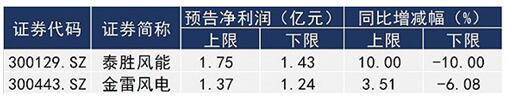 泰勝風(fēng)能(300129.SZ)、金風(fēng)雷電(300443.SZ)前三季度預(yù)計凈利潤同比存在上升和下降的可能。泰勝風(fēng)能預(yù)測報告期內(nèi)歸屬于上市公司股東的凈利潤變動范圍為1.43億元至1.75億元,同比變動幅度為-10%至10%;金風(fēng)雷電則預(yù)計前三季度實現(xiàn)歸屬于上市公司股東的凈利潤為1.24億元至1.37億元,同比變動幅度為-6.08%至3.51%。