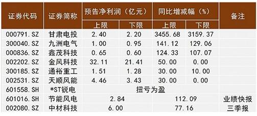 風(fēng)電企業(yè)前三季度業(yè)績前瞻