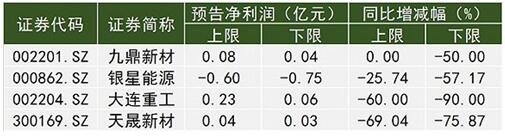 九鼎新材(002201.SZ)、銀星能源(000862.SZ)、大連重工(002204.SZ)、天晟新材(300169.SZ)預(yù)計今年前三季度凈利潤同比去年下滑。其中,銀星能源虧損,預(yù)計前三季度歸屬于上市公司股東的凈利潤變動范圍為-0.75億元至-0.6億元,同比去年下滑25.74%至57.17%。銀星能源在預(yù)告中解釋,由于三季度風(fēng)資源狀況較差,風(fēng)電機組運行小時減少,并且其裝備制造業(yè)同比銷量下降幅度較大,由此造成續(xù)虧情況。