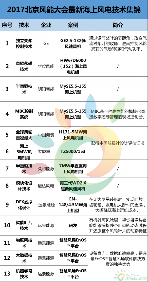 風(fēng)電頭條整理了在本次風(fēng)能大會上展出或者討論到的海上風(fēng)電技術(shù)和產(chǎn)品,如下表所示: