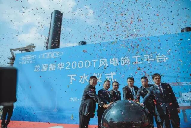 “龍源振華叁號”2000噸海上風(fēng)電施工平臺下水儀式