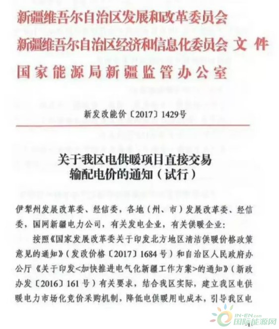 新疆電供暖用電采取直接交易  分散式電供暖的電價:平段0 224元 千瓦時,谷段0 112元 千瓦時;集中式電供暖的電價:平段0 18元 千瓦時,谷段0 09元 千瓦時?! ⌒陆姽┡秒姴扇≈苯咏灰追绞剑译娏?