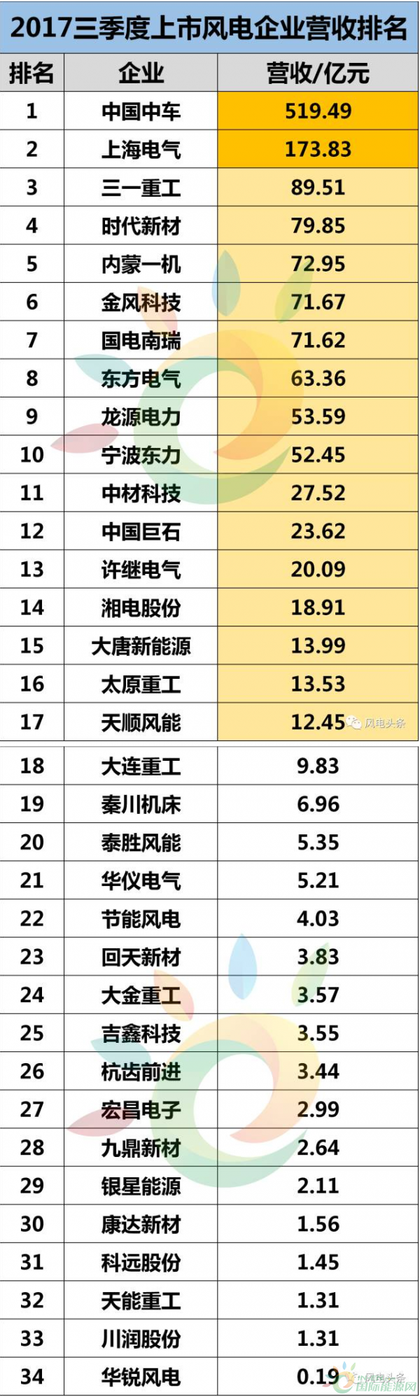 最高營收519.49億元!中車、上氣、金風(fēng)、龍?jiān)吹?4家上市風(fēng)電企業(yè)三季度業(yè)績排名!