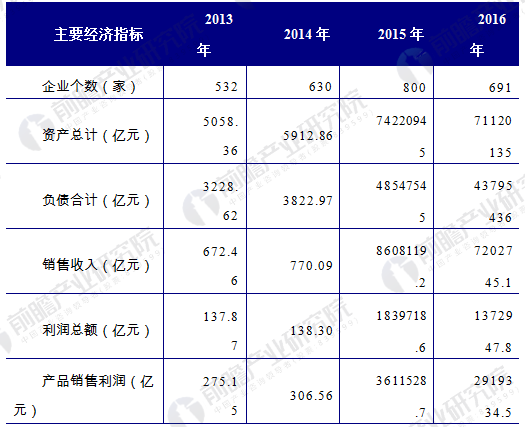 2013-2016年風力發(fā)電行業(yè)主要經(jīng)濟指標(單位:億元,家,%)