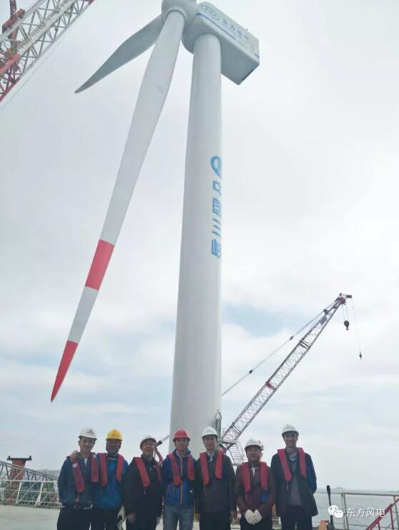 2017年11月10日上午11點(diǎn)38分,在業(yè)主與東方風(fēng)電雙方領(lǐng)導(dǎo)的共同見證下,東方風(fēng)電首臺(tái)抗臺(tái)風(fēng)型5MW海上風(fēng)電機(jī)組在三峽集團(tuán)福建興化灣海上風(fēng)電場(chǎng)完成吊裝。東方風(fēng)電自2009年啟動(dòng)海上風(fēng)電機(jī)組開發(fā),歷經(jīng)樣機(jī)開發(fā)、樣機(jī)