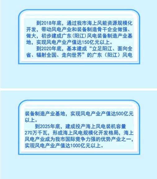 到2020年底,基本建成“立足陽江、面向全省、輻射全國、走向世界”的廣東(陽江)風電裝備制造產業(yè)基地,實現(xiàn)風電產業(yè)產值達500億元以上。