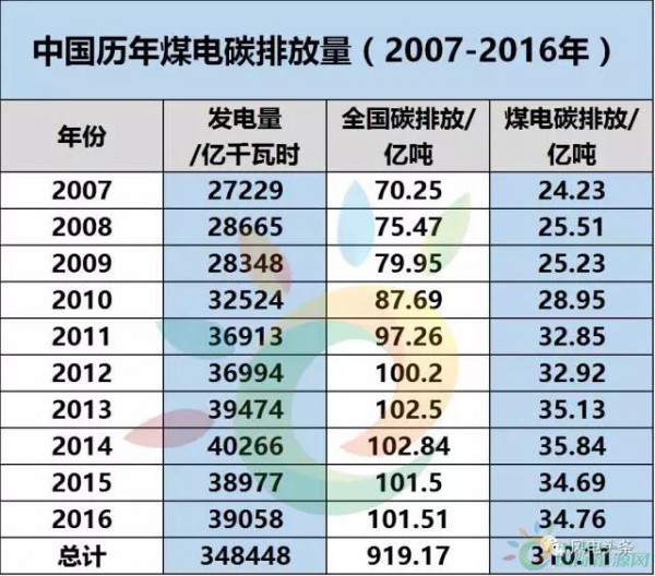 根據(jù)表格數(shù)據(jù)顯示:十年來中國煤電發(fā)電量達(dá)到348448億千瓦時,而累積達(dá)到的碳排放量高達(dá)310.11億噸!幾乎占到了中國十年碳排放總量的三分之一!