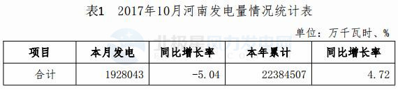 2017 年 10 月河南省電力供需情況通報