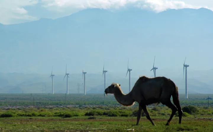 駱駝穿越大坂山的風(fēng)力發(fā)電場