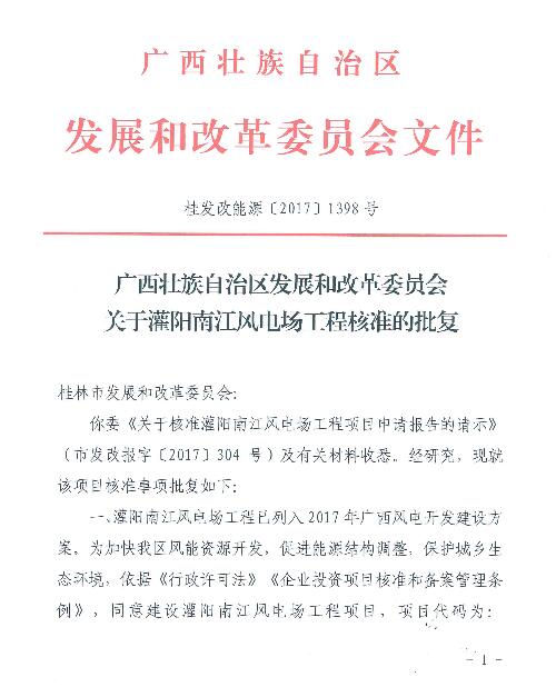 桂林富興能源灌陽(yáng)縣50MW風(fēng)電場(chǎng)項(xiàng)目獲廣西發(fā)改委核準(zhǔn)
