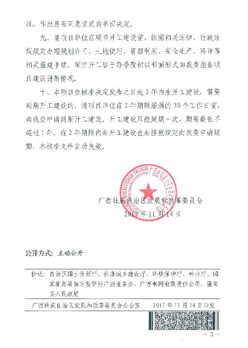 近日廣西壯族自治區(qū)發(fā)改委核準(zhǔn)了灌陽(yáng)南江風(fēng)電場(chǎng)工程,項(xiàng)目單位為桂林富興能源投資開(kāi)發(fā)有限公司,項(xiàng)目建設(shè)地點(diǎn)位于灌陽(yáng)縣西山鄉(xiāng)觀音閣鄉(xiāng)一帶山地,建設(shè)容量為50MW,總投資9323萬(wàn)元。以下為批復(fù)原文: