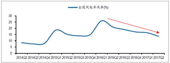 2017年第2季度棄風(fēng)率為11.1%,在第1季度16.4%的水平上也出現(xiàn)了明顯的下降。