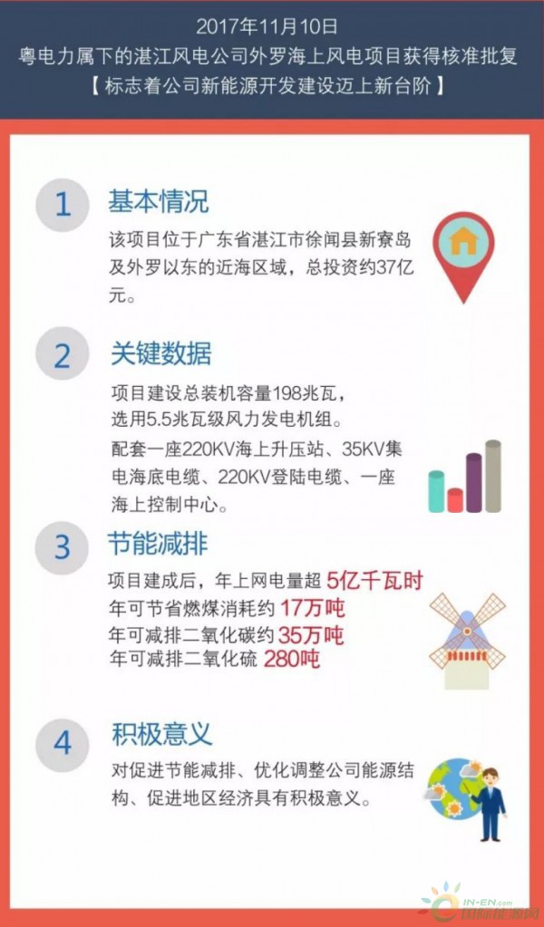 2017年11月10日,粵電力樹下的湛江風電公司外羅海上風電項目獲得核準,具體如下: